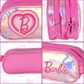 Estojo Barbie Triplo Holográfico Infantil Meninas Rosa