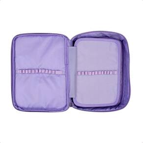 Fabricado em tecido super resistente, o estojo assegura durabilidade e resistência ao uso diário, enquanto o fechamento em zíper proporciona segurança e fácil acesso aos seus objetos. A cor lilás traz um toque de charme e delicadeza ao acessório.