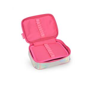 Estojo infantil escolar, confeccionado em tecido acetinado. Possui estampa holográfica com detalhes em rosa, repartição única ampla, fechamento por zíper, compartimento elástico porta canetas ou lápis, acabamento e costura no tom. - material: pvc Atenção: imagem meramente ilustrativa. Pode ocorrer mudanças na tonalidade da cor do produto.