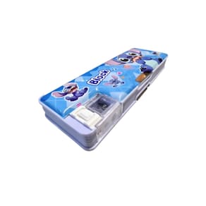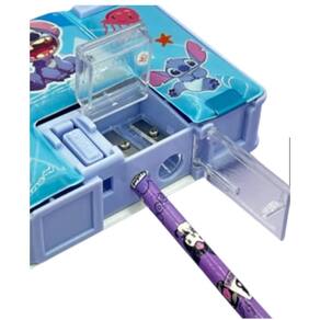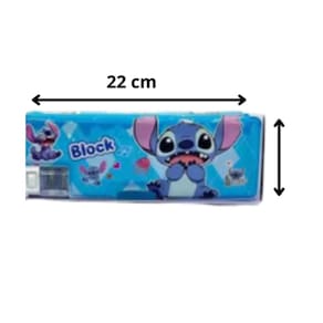 Estojo Bloco Escolar Stitch Azul Duplo com Apontador refere-se ao modelo rígido/semi-rígido de plástico ou PVC, que possui abertura tipo bloco ou estojo de metal antigo, com o apontador integrado à estrutura.Aqui está a descrição completa e detalhada:CaracterísticaDescrição DetalhadaTipo de EstojoBloco / Rígido / Dupla Face ou 2 Compartimentos Personagem/TemaStitch Disney, Lilo & Stitch Cor PrincipalAzul Geralmente em tons de azul claro ou celeste MaterialPVC ou Plástico Rígido/ResistenteCompartimentosDuplo 2 compartimentos separados, muitas vezes um em cada lado ou em dois níveis .Recurso PrincipalPossui um apontador integrado embutido na estrutura do estojo, geralmente em uma das laterais ou no meio, com compartimento para armazenar o cavaco.Mecanismo de AberturaFechamento por botão, clique ou imã. A abertura pode ser por aba articulada tipo flip ou por botões que acionam a abertura de compartimentos específicos.Capacidade EstimadaMédia/Pequena. Ideal para um conjunto básico de materiais aprox. 20 a 30 itens entre lápis, canetas, borracha e itens pequenos .Dimensões ComunsComprimento: approx 22 a 23 cmLargura: approx 8 a 9 cmProfundidade/Espessura: approx 3 a 4cmDiferenciaisDesign infantil/divertido, fácil de limpar devido ao material plástico e o apontador embutido oferece praticidade.Este modelo é popular por ser prático e por manter o material bem protegido devido à sua estrutura rígida. As dimensões Altura, Largura e Comprimento/Profundidade do Estojo Escolar Disney Stitch Duplo Com Apontador variam um pouco dependendo do material rígido de PVC ou flexível de tecido e do fabricante.O modelo mais comum e compacto que possui apontador embutido geralmente em PVC/plástico apresenta as seguintes dimensões:MedidaDimensão Aproximada Modelo Compacto com Apontador Comprimento Largura da Frente approx 22,7 cm a 23 cmLargura Altura da Frente approx 8 cmAltura/Profundidade Espessura approx 3,5 cm