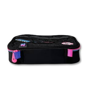 Características: - Confeccionado em material soft com strap logado - Possui vários apliques de patches e matelassê no painel frontal - Possui divisão com elásticos para prender diversos lápis e amplo espaço para mais lápis e materiais diversos. Possui ainda uma bolsinha dentro do estojo. Cabe muita coisa - Este estojo é oficial, garantindo que você tenha um produto autêntico e de alta qualidade. - Material Resistente - Acompanha puxadores personalizados
