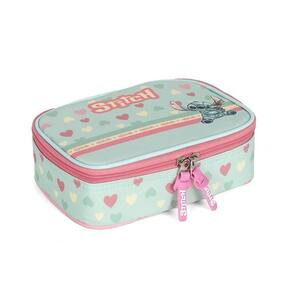 Estojo Box é super espaçoso e cabe todos os seus materiais de escrita. Ele é composto por uma divisória interna com elásticos para separar lápis, canetas e lapiseiras, e os demais materiais vão soltos no compartimento.