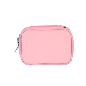 Estojo Box é super espaçoso e cabe todos os seus materiais de escrita. Ele é composto por uma divisória interna com elásticos para separar lápis, canetas e lapiseiras, e os demais materiais vão soltos no compartimento.