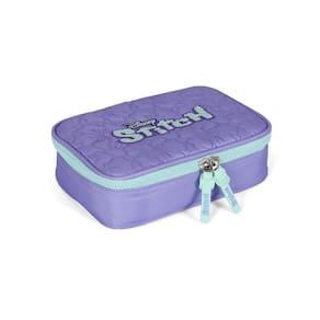 Estojo Box é super espaçoso e cabe todos os seus materiais de escrita. Ele é composto por uma divisória interna com elásticos para separar lápis, canetas e lapiseiras, e os demais materiais vão soltos no compartimento.