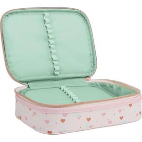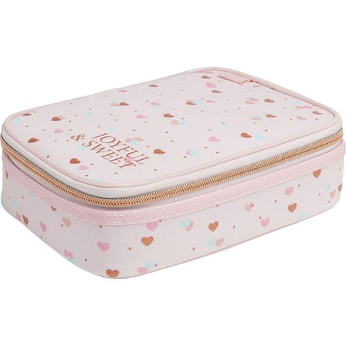 O Estojo Box Académie Coração Metalizado Rosa é prático, espaçoso e ideal para quem possui muitos lápis, canetas e outros materiais e acessórios.