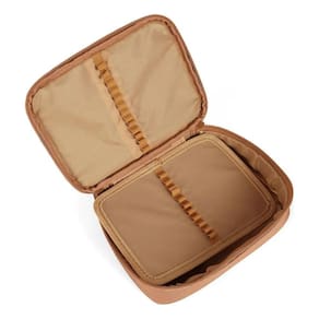 Com dimensões de 22 cm de comprimento, 15 cm de largura e 5 cm de profundidade, o estojo é compacto e leve, perfeito para ser transportado na mochila.