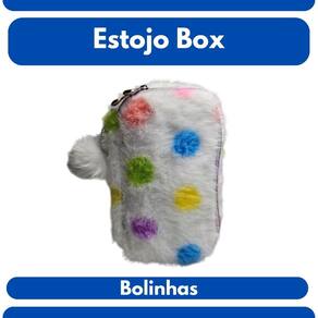 Estojo Box Escolar Pelúcia Bola Colorida Organizador Grande Fofo Branco Divisórias Lápis Caneta Aula