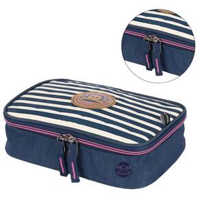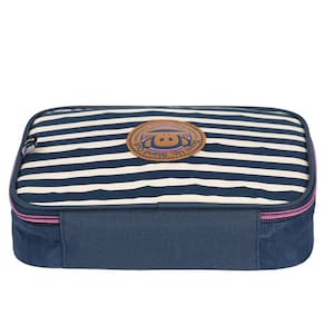 Estojo Box Especial Especial World Navy Paul Frank Cor: Azul marinho O Estojo Box Especial Paul Frank World - Navy combina um design náutico jovem e despojado, perfeito para o dia a dia e para a escola. Confeccionado em material resistente, possui divisória interna e bolso com zíper para organizar pequenos objetos com praticidade. O fechamento principal também é por zíper, garantindo segurança. As tiras de elástico internas são ideais para fixar lápis, canetas e outros itens, mantendo tudo no lugar de forma organizada. Produto SESTINI certificado pelo INMETRO Registro 003403/2018 - OCP - 0061 , assegurando qualidade e segurança.