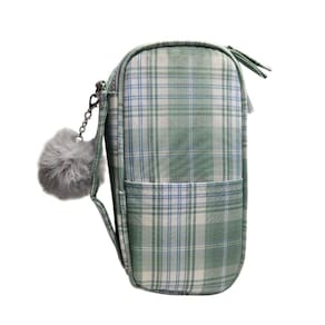 1 Estojo Box Organizador Escolar na cor selecionada com Chaveiro Pompom (Observação: Lápis, canetas e outros materiais mostrados nas imagens são apenas para demonstração e não acompanham o produto.)