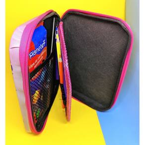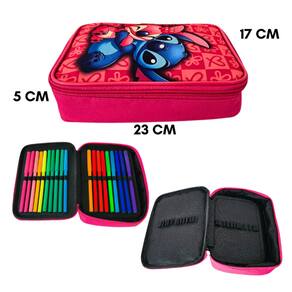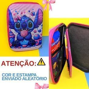 Por que escolher este estojo? Design exclusivo e encantador: com os adoráveis personagens Angel e Stitch, seu dia a dia ganha um toque divertido e cheio de estilo. Espaço generoso: com aproximadamente 23 cm x 17 cm x 5 cm, acomoda lápis, canetas e acessórios com facilidade. Organização impecável: duas divisórias internas com elásticos para até 26 lápis ou canetas garantem que tudo fique seguro e no lugar. Durabilidade garantida: feito de material resistente com acabamento moderno, seu conteúdo fica protegido contra o uso diário. Fechamento prático: zíper robusto que facilita a abertura e o fechamento sem preocupações. Limpeza simples: basta passar um pano úmido com sabão neutro e secar na sombra. Evite álcool e querosene para preservar o estojo. ATENÇÃO: A cor e estampa são enviadas aleatoriamente conforme disponibilidade de estoque.