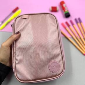 Estojo Box Jumbo Tilibra Metalizado Rosê 15x21x6cm