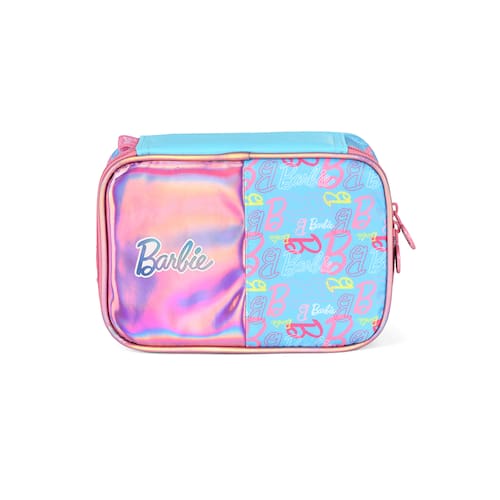 Marca: Luxcel (Licenciado Oficialmente Barbie/Mattel) Personagem: Barbie Cor Predominante: AZUL CLARO/TURQUESA com detalhes em PINK. Design Fashion: Metade do painel frontal em material Holográfico/Iridescente e metade com estampa sutil da Barbie. Modelo Box: Formato retangular e espaçoso para grande capacidade (ideal para grande quantidade de material). Organização Interna: Estrutura com elásticos organizadores nas abas internas para fixar lápis e canetas individualmente. Fechamento: Zíper resistente com puxador personalizado da Barbie. Material: Confeccionado em Poliéster de alta qualidade.