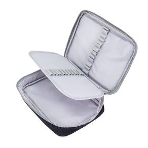 Fabricado em microfibra de alta qualidade, o estojo é resistente, leve e fácil de limpar. Possui divisória interna, 24 elásticos organizadores e amplo espaço para acomodar até 100 canetas, além de marcadores, borrachas, post-its, régua pequena e outros acessórios.
