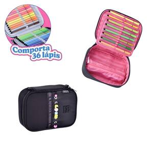 Estojo Box Rebecca Bonbon 36 Pens Meninas Escolar - Cor: Preto
