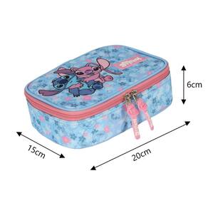 Características do Estojo Escolar: - 1 Compartimento espaçoso com 36 elásticos para canetas e lapis - Fecho com zíper personalizado e emborrachado - Estampa Stitch - Modelo Unico e Exclusivo - Material: 10% Poliéster - Material Forro: 100% Poliéster