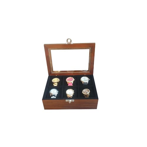 Na linha madeira maciça é possível observar os veios naturais da madeira. As dobradiças não são aparentes e possuem um limitador. A tampa possui visor com vidro transparente. Acompanha um fecho giratório de pressão em metal, ideal para colocar cadeado. Seus relógios sempre bem protegidos e acomodados confortavelmente, com toda segurança e facilidade no