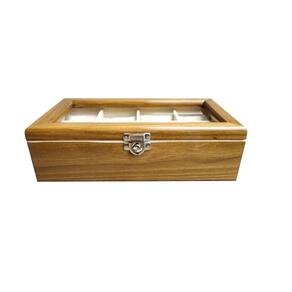 Prático e luxuoso, na linha madeira maciça encontrarmos um toque vintage, objeto decorativo onde são visíveis os veios naturais da madeira. Nossos estojos irão facilitar seu dia a dia com a organização e segurança que sua coleção precisa, além de proporcionar um ambiente mais sofisticado e elegante.Produzida com madeira natural de reflorestamento. Escolhida rigorosamente, totalmente tratada, tingida e envernizada externamente. Internamente, inclusive as divisórias são revestidas com nylon aveludado e as almofadas que acompanham o produto, normalmente são também em tecido aveludado. Na linha madeira maciça é possível observar os veios naturais da madeira. As dobradiças não são aparentes e possuem um limitador. A tampa possui visor com vidro transparente. Acompanha um fecho giratório de pressão em metal, ideal para colocar cadeado. Seus relógios sempre bem protegidos e acomodados confortavelmente, com toda segurança e facilidade no manuseio. Características das caixas para relógio: Produto fabricado em madeira maciça de qualidade; Padrão Cerejeira; Não empena; Revestimento interno aveludado de Bege/Prata, inclusive as divisórias; Fecho giratório de pressão em metal suporta cadeado ; Tampa de vidro 2 mm; Acompanha almofadas para todos os casulos Medidas aproximadas dos casulos larg x comp x alt : 7,5 x 7,5 x 7,0 cm. Relógios não acompanham o estojo Imagens meramente ilustrativas