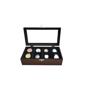 Prático e luxuoso, encontrarmos um toque vintage, objeto decorativo. Nossos estojos irão facilitar seu dia a dia com a organização e segurança que sua coleção precisa, além de proporcionar um ambiente mais sofisticado e elegante. Totalmente tratada, tingida e envernizada externamente. Internamente, inclusive as divisórias são revestidas com nylon aveludado e as almofadas que acompanham o produto, normalmente são também em tecido aveludado. Na linha madeira maciça é possível observar os veios naturais da madeira. As dobradiças não são aparentes e possuem um limitador. A tampa possui visor com vidro transparente. Acompanha um fecho giratório de pressão em metal, ideal para colocar cadeado. Seus relógios sempre bem protegidos e acomodados confortavelmente, com toda segurança e facilidade no manuseio. Características das caixas para relógio: Produto fabricado em MDF; Padrão Imbuia; Não empena; Revestimento interno aveludado de preto, inclusive as divisórias; Fecho giratório de pressão em metal suporta cadeado ; Tampa de vidro 2 mm; Acompanha almofadas para todos os casulos Medidas aproximadas dos casulos larg x comp x alt : 7,5 x 7,5 x 7,0 cm. Relógios não acompanham o estojo Imagens meramente ilustrativas