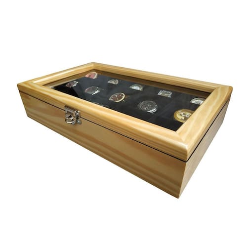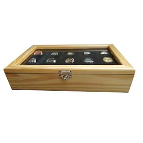 Prático e luxuoso, na linha madeira maciça encontrarmos um toque vintage, objeto decorativo onde são visíveis os veios naturais da madeira. Nossos estojos irão facilitar seu dia a dia com a organização e segurança que sua coleção precisa, além de proporcionar um ambiente mais sofisticado e elegante. Produzida com madeira natural de reflorestamento. Escolhida rigorosamente, totalmente tratada, tingida e envernizada externamente. Internamente, inclusive as divisórias são revestidas com nylon aveludado e as almofadas que acompanham o produto, normalmente são também em tecido aveludado. Na linha madeira maciça é possível observar os veios naturais da madeira. As dobradiças não são aparentes e possuem um limitador. A tampa possui visor com vidro transparente. Acompanha um fecho giratório de pressão em metal, ideal para colocar cadeado. Seus relógios sempre bem protegidos e acomodados confortavelmente, com toda segurança e facilidade no manuseio. Características das caixas para relógio: - Padrão Marfim, Flocado Internamente de Preto; - Produto fabricado em madeira maciça de qualidade; - Não empena; - Revestimento interno aveludado, inclusive as divisórias; - Fecho giratório de pressão em metal suporta cadeado ; - Tampa de vidro 2 mm; - Acompanha almofadas para todos os casulos - Medidas aproximadas dos casulos larg x comp x alt : 7,5 x 7,5 x 7,0 cm. Relógios não acompanham o estojo - Imagens meramente ilustrativas