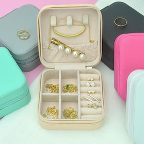 - Parte Interna Cuidadosamente Revestida em Veludo - Dimensões 10x5x10 largura x altura x profundidade - Possui Divisórias e Nichos para Transportas Anéis - Ganchos para Pendurar Itens como Brincos - Suas Jóias Protegidas em Grande Estilo
