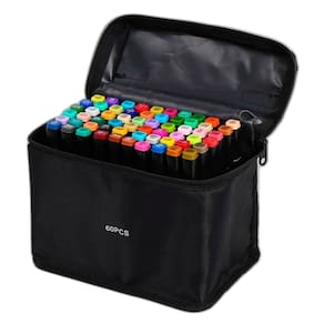 O kit inclui marcadores com pontas duplas, totalizando uma variedade de pontas diferentes. Esses marcadores são à base de álcool, livres de odor, tornando-os adequados até mesmo para uso infantil.