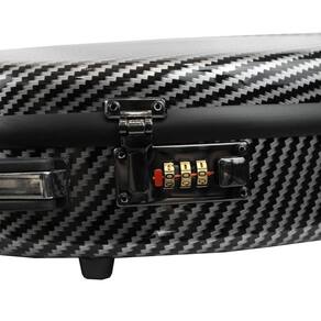 Estojo case fibra de vidro violino 4/4 preto carbono Case fibra de vidro violino 4/4 Case para violino 4/4 Suporte para 2 arcos Impermeável Possui duas alças Super resistente 2,500 kg aproximadamente Estojo interno para lápis e borracha Espaço para espaleira Cor interna disponível : preto Marca: Não Informado