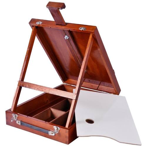 Esse estojo cavalete de pintura é ideal para artistas e pintores para facilitar na organização de suas tintas e pinceis de pintura. Ele possui divisórias especiais para tintas, pinceis e acessórios artísticos e vem com um cavalete. O cavalete é ideal para dar mais estabilidade na hora de pintar o quadro. Ter um suporte adequado para a sua tela influencia até na precisão do uso pincel na hora da pintura. Fabricado em madeira, possui um excelente acabamento e é muito resistente.