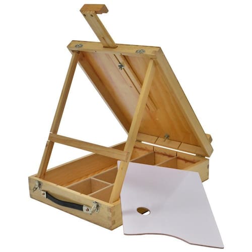 Esse estojo cavalete de pintura é ideal para artistas e pintores para facilitar na organização de suas tintas e pinceis de pintura. Ele possui divisórias especiais para tintas, pinceis e acessórios artísticos e vem com um cavalete. O cavalete é ideal para dar mais estabilidade na hora de pintar o quadro. Ter um suporte adequado para a sua tela influencia até na precisão do uso pincel na hora da pintura. Fabricado em madeira, possui um excelente acabamento e é muito resistente.