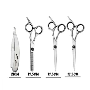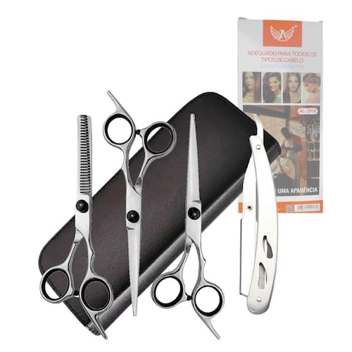 Código de barras: 7898802429173 Estojo com 6 Peças Tesouras e Navalha Profissionais Barbeiro Fio Laser PRATA Marca: Altomex Para realizar um bom corte de cabelo, você precisa ter um equipamento apropriado, pois ninguém gosta de usar equipamentos que te deixam na mão ou então que mastigue o cabelo na hora de fazer o corte, por isso você precisa de tesouras que o ajude a fazer o trabalho direito para que o seu cliente goste de seu trabalho e volte mais vezes. Você precisa ter no mínimo tesouras de corte de cabelo profissionais com excelentes qualidades, com acabamento mais leves assim como essa, pois só quem já passou por esses problemas de não ter equipamentos adequados sabe o que é ficar frustrado. Por isso elas fazem toda a diferença no acabamento de um bom corte. O Material é de alta qualidade, durável para uso mais longo. É também anti-estático sem ferir ou mastigar o cabelo, especialmente para aquelas mulheres com cabelo longo e danificados. Kit acompanha um estojo de pequeno porte, fácil de ser carregado para qualquer lugar, compacto e leve Kit perfeito para quem deseja trabalhar com produto 100% novo e de alta qualidade! Ferramentas ideias para cabeleireiros e barbeiros. 1 Tesoura Fio Laser 6.0 polegadas 1 Tesoura Fio Navalha 6.0 polegadas 1 Tesoura Desfiadeira 6.0 polegadas 1 Navalhete 1 Estojo de couro sintético. 1 Pano de limpeza Disponível na cor: -Prata Medidas da embalagem: L: 5,0 x C: 12,50 x A: 24,5cm Peso do Produto: 350g