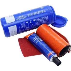 Acompanha: 1 RV-01 (tira de reparo de 75 x 305 mm) 1 CVB-01 (bisnaga de cimento vulcanizante de 15 g) 1 Lixa (40 x 60 mm)