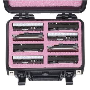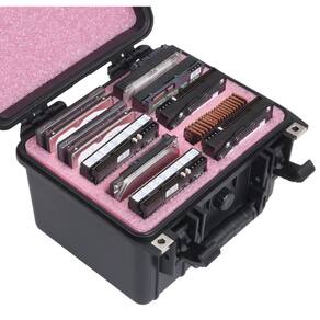 Case Club A capa de armazenamento de unidade interna média HDD e SSD comporta uma variedade de tipos de unidades de armazenamento interno em uma capa resistente, à prova d'água e hermética, perfeita para transporte e armazenamento. A espuma evita choques estáticos, não é abrasiva, absorve impactos e é extremamente duradoura. Esta capa foi projetada para superar toda a concorrência em versatilidade, longevidade, resistência e ser o próximo nível em organização, armazenamento e necessidades de transporte. A capa em si tem garantia vitalícia contra quebras e defeitos para que você saiba que seus itens estarão protegidos contra danos. Proteja seus dados, compre Case Club! - A capa serve para combos de até 10 HDDs de 3,5 polegadas, 40 unidades de 2,5 polegadas (HDD ou SSD) ou 180 SSDs M.2 - A espuma foi engenhosamente cortada para maximizar a capacidade de cada tipo de unidade! - Os HDDs de 3,5 polegadas, com 1,9 cm ou 2,5 cm de espessura, simplesmente se encaixam no bolso principal - As unidades de 6,3 cm (HDD ou SSD) utilizam um "rack" de espuma removível que comporta 4 unidades por bolso principal - Os SSDs M.2 utilizam 2 espumas inferiores "planas" (para suporte) e 1 espuma superior "ranhurada" para caber em 18 unidades por bolso principal. Os compartimentos M.2 servem apenas para SSDs com 22 mm de largura e não servem para dissipadores de calor - A espuma antiestática rosa é utilizada para evitar danos e corrupção de dados que podem ocorrer devido ao acúmulo natural de eletricidade estática. Confie apenas na espuma antiestática rosa quando se trata de armazenar eletrônicos delicados! A espuma tem célula fechada para que possa ser secada se molhada e não é abrasiva, absorve impactos e não se deteriorará com o tempo - As dimensões externas da capa são 27 cm C x 24 cm L x 17 cm A. A capa é 100% à prova d'água, hermética e à prova de poeira. O revestimento de plástico rígido moldado por injeção protege contra choques, quedas, impactos e elementos. Orifícios de cadeado para maior segurança. Válvula de alívio de pressão embutida para que a capa possa ser aberta em qualquer altitude. Perfeito para bagagem despachada ou bagagem de mão.