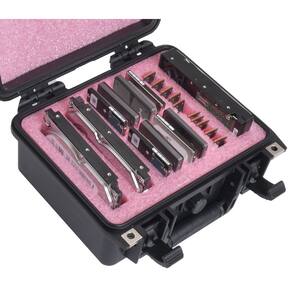 Case Club A pequena capa de armazenamento para disco rígido interno e SSD comporta uma variedade de tipos de unidades de armazenamento interno em uma capa resistente, à prova d'água e hermética, perfeita para transporte e armazenamento. A espuma evita choques estáticos, não é abrasiva, absorve impactos e é extremamente duradoura. Esta capa foi projetada para superar toda a concorrência em versatilidade, longevidade, resistência e ser o próximo nível em organização, armazenamento e necessidades de transporte. A capa em si tem garantia vitalícia contra quebras e defeitos para que você saiba que seus itens estarão protegidos contra danos. Proteja seus dados, compre Case Club! - A capa serve para combos de até 6 HDDs de 8.9 cm, 24 unidades de 6.3 cm (HDD ou SSD) ou 96 SSDs M.2 - A espuma foi engenhosamente cortada para maximizar a capacidade de cada tipo de unidade! - Os HDDs de 3,5 polegadas, com 1,9 cm ou 2,5 cm de espessura, simplesmente se encaixam no bolso principal - As unidades de 6,3 cm (HDD ou SSD) utilizam uma "cruz" de espuma removível que comporta 4 unidades por bolso principal - Os SSDs M.2 utilizam 2 espumas "ranhuradas" em cada bolso principal para acomodar 16 unidades por bolso principal. Os slots M.2 servem apenas para SSDs com 22 mm de largura, até 80 mm de comprimento e não servem para dissipadores de calor - A espuma antiestática rosa é utilizada para evitar danos e corrupção de dados que podem ocorrer devido ao acúmulo natural de eletricidade estática. Confie apenas na espuma antiestática rosa quando se trata de armazenar eletrônicos delicados! A espuma tem célula fechada para que possa ser secada se molhada e não é abrasiva, absorve impactos e não se deteriorará com o tempo - As dimensões externas da capa são 27 cm C x 24 cm L x 12 cm A. A capa é 100% impermeável e à prova de poeira. O revestimento de plástico rígido moldado por injeção protege contra choques, quedas, impactos e elementos. Orifícios de cadeado para maior segurança. Válvula de alívio de pressão embutida para que a capa possa ser aberta em qualquer altitude. Perfeito para bagagem despachada ou bagagem de mão.