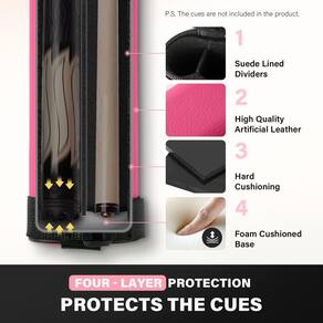 Seja você um entusiasta amador ou um jogador profissional, uma capa de taco de sinuca Trymaker é um acessório essencial para tacos de sinuca, oferecendo um armazenamento seguro e uma maneira conveniente de carregar seus tacos de sinuca, permitindo que você aproveite o jogo de sinuca a qualquer hora, em qualquer lugar. Versátil para várias configurações: esta capa de taco de piscina é adequada para uma variedade de lugares, incluindo, entre outros, casas, clubes, escolas e salas de piscina. Serve como um excelente companheiro para guardar com segurança seus tacos de piscina quando não estiver em uso. - "Protetor de taco": Trymaker capa rígida para tacos de piscina oferece excelente proteção para as pistas. O design de almofada macia na parte inferior absorve o impacto quando as tacos caem. A capa rígida evita colisões externas de forma eficaz. O forro aveludado com um design dividido reduz o desgaste entre as pontas dentro da capa - [Resistente e durável]: a superfície da capa para taco de piscina é feita de couro sintético de alta qualidade, resistente a arranhões e à prova d'água. A técnica de costura meticulosa reforça a estrutura geral, aumentando a durabilidade - [Leve e portátil] Esta capa para taco tem 86 cm de comprimento e pode conter 2 tacos e 2 eixos (adequada para tacos de duas peças de 147 cm ou menos, não compatível com tacos de 3/4). Vem com dois bolsos para carregar acessórios: o bolso grande mede 40,6 cm x 8,4 cm x 3,5 cm e o bolso pequeno mede 15,2 cm x 8,4 cm x 3,5 cm - [Design confortável]: a alça de ombro ajustável nas capas para taco de bilhar possui acolchoamento macio adicional, reduzindo o desconforto nas calças e proporcionando uma melhor experiência de transporte com maior conforto - [Vale a pena escolher]: A capa Trymaker Cue é uma escolha que vale a pena para entusiastas de bilhar. O presente de alta qualidade certamente trará alegria e surpresa ao destinatário - [Pós-venda]: Se você tiver alguma dúvida pós-venda, sinta-se à vontade para entrar em contato conosco. Responderemos dentro de 24 horas e daremos uma solução satisfatória. A Trymaker está comprometida em oferecer aos clientes uma melhor experiência.