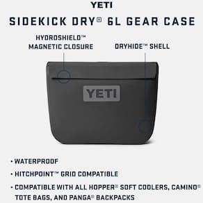 A capa de engrenagem à prova d'água YETI Sidekick Dry 6L é a maneira sem preocupações de manter o equipamento de um dia alto e seco. Possui bolsos internos de malha para ajudar você a se manter organizado no campo, uma vedação à prova d'água que consiste em ímãs poderosos e fecho de fecho aderente ultradurável, além de costuras soldadas por RF que repelem qualquer umidade desonesta. Esta bolsa de equipamentos à prova d'água é projetada para uso sozinha, presa à alça lateral ou a todos os modelos YETI Hopper Soft Cooler, bolsa Camino Carryall e mochila impermeável Panga através do sistema HitchPoint Grid e MOLLE. - A caixa de engrenagem à prova d'água YETI Sidekick Dry 6L é grande o suficiente para todas as suas caixas de moscas, kit de primeiros socorros e uma camada sobressalente. Compatível com todos os produtos Camino and Hopper e a mochila Panga - Capa para secar – Materiais duráveis semelhantes aos balsas de alto desempenho. - Fecho hidráulico – usa ímãs poderosos para criar um escudo 100% à prova d'água. - Costuras soldadas por RF – significa que não há como entrar para qualquer umidade desonesta. - O SideKick Dry 6L tem dimensões externas que medem 34,3 x 24,5 x 8 cm