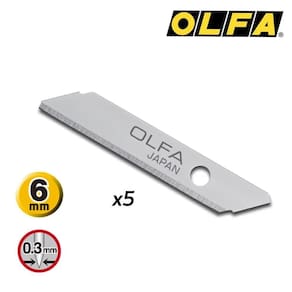 - lâmina de aço ; - altura de 6mm - espessura de 0,3mm - indicada para o estilete: ts-1 - contém: 05 unidades Estojo de Lâminas Olfa TSB-1 com 5 Unidades Estojo com 5 lâminas de 0,3mm de espessura, 6mm x 35mm, ideal para o estilete TS-1. Ean: 091511900194