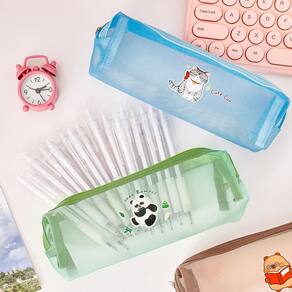 Material: malha de nylon Tamanho: 20 cm* 6 cm* 7 cm Peso: 12 gDesign adorável para gatos: este estojo de lápis apresenta um lindo desenho animado de gato com uma expressão divertida, adicionando um toque divertido e charmoso à sua coleção de artigos de papelaria. Armazenamento de grande capacidade: apesar de seu tamanho compacto, esta bolsa de lápis oferece amplo espaço para armazenar canetas, lápis, borrachas e outros pequenos itens de papelaria, mantendo-os organizados e de fácil acesso. Malha de nylon transparente: feita de malha de náilon durável, esta caixa de lápis é transparente, permitindo que você veja facilmente seu conteúdo, enquanto a construção em malha garante respirabilidade e flexibilidade. Leve e portátil: pesando apenas 12 gramas, este estojo de lápis é extremamente leve e fácil de transportar, o que o torna ideal para estudantes, crianças e qualquer pessoa em trânsito. Uso versátil: perfeito para escola, casa ou viagem, este estojo de lápis não é apenas funcional, mas também adiciona um elemento fofo aos seus suprimentos diários.
