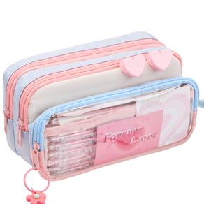 Material: Peso do tecido: 100 g Tamanho: 22 cm* 8 cm* 12 cm Design de coração encantador: este estojo de lápis apresenta um divertido zíper em forma de coração e um design “Forever Love”, adicionando um toque divertido e elegante ao seu material escolar. Espaçosa e organizada: com vários compartimentos, esta bolsa de lápis oferece amplo espaço para canetas, lápis, borrachas e muito mais, mantendo tudo bem organizado. Durável e leve: feito de tecido de alta qualidade, este estojo para canetas é leve e durável, garantindo que dure anos de uso escolar ou no escritório. Janela de PVC transparente: a janela transparente permite que você visualize e acesse facilmente seus itens de papelaria, adicionando funcionalidade e estilo. Perfeito para estudantes: ideal para estudantes do ensino fundamental, médio e universitário, este estojo de lápis combina um design fofo e armazenamento prático para o uso diário.