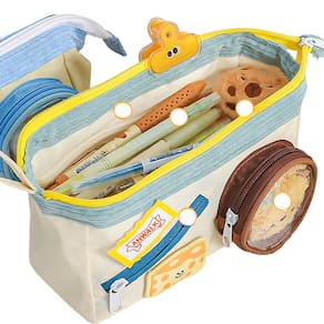 Material: Peso do tecido: 97 g Tamanho: 19,5 cm* 8 cm* 12 cm Design adorável e exclusivo: este estojo de lápis apresenta um design divertido inspirado em queijo com detalhes coloridos, tornando-o um acessório fofo e atraente para estudantes. Grande capacidade de armazenamento: com vários compartimentos e amplo espaço, cabe facilmente em todos os seus itens essenciais de papelaria, de canetas e lápis a borrachas e muito mais. Tecido de alta qualidade: feita com tecido durável, esta bolsa para canetas garante um uso duradouro, mantendo sua estrutura leve e portátil. Conveniente e organizado: os vários compartimentos com zíper permitem uma fácil organização de seus artigos de papelaria, evitando que os itens se misturem ou se percam. Perfeito para escola e escritório: ideal para estudantes do ensino fundamental, médio e universitário, este estojo de lápis oferece estilo e funcionalidade para o uso diário.