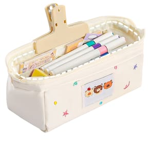 Material: Peso do tecido: 73 g Tamanho: 210 mm* 70 mm* 100 m Bordado Charming Bear: apresenta um adorável bordado de urso com um design divertido, perfeito para quem adora artigos de papelaria fofos e divertidos. Grande capacidade: com um interior espaçoso (210 mm70 mm100 mm), este estojo pode conter todas as suas canetas, lápis, borrachas e outros materiais escolares ou de escritório. Leve e durável: feito de tecido de alta qualidade, este estojo de lápis é leve (73 g) e durável, ideal para o uso diário na escola ou no escritório. Compacto e prático: seu tamanho compacto facilita o encaixe em mochilas ou mesas, enquanto o design elegante adiciona um toque pessoal à sua coleção de artigos de papelaria. Uso versátil: adequado para estudantes do ensino fundamental e médio, estudantes universitários e profissionais que apreciam acessórios de papelaria fofos, funcionais e elegantes.