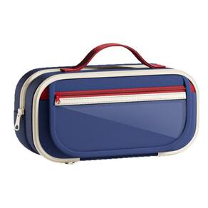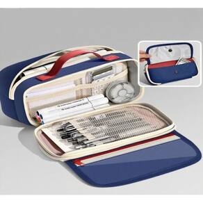 Material: tela Tamanho: 22 cm* 10,5 cm* 5,5 cm Peso: 150 g Design espaçoso: apresenta uma grande capacidade, perfeito para organizar canetas, lápis, borrachas e outros itens de papelaria em um espaço compacto. Portátil e conveniente: equipado com uma alça resistente para facilitar o transporte, tornando-o ideal para estudantes e profissionais em trânsito. Material de lona durável: feito de lona de alta qualidade, este estojo de lápis foi projetado para suportar o uso diário, garantindo durabilidade e desempenho duradouro. Versátil para todas as idades: adequado para estudantes do ensino fundamental, médio e universitário, oferecendo uma solução elegante e prática para organizar artigos de papelaria. Elegante e moderno: o moderno esquema de cores retrô azul e vermelho adiciona um toque de elegância, tornando-o um acessório indispensável para quem valoriza o estilo e a funcionalidade.