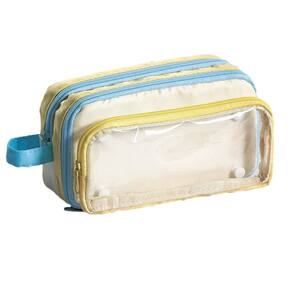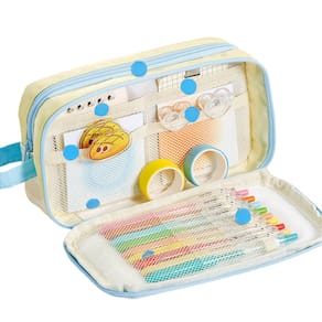 Material: Peso do tecido: 101 g Tamanho: 205* 90* 110 mm Grande capacidade e design funcional: possui vários compartimentos para armazenamento organizado, ideal para guardar canetas, lápis, marcadores e outros pequenos artigos de papelaria. Design elegante de blocos de cores: a combinação de amarelo claro e azul oferece uma estética fresca e moderna, perfeita para estudantes, funcionários de escritório e criativos. Compartimentos transparentes e removíveis: acesse facilmente seu papel de carta com a frente transparente, e os compartimentos removíveis adicionam versatilidade para várias necessidades de armazenamento. Construção em tecido durável: feito de tecido de alta qualidade que é leve e duradouro, perfeito para uso diário. Portátil e conveniente: o estojo de lápis é compacto e vem com uma alça para facilitar o transporte, tornando-o ideal para viagens, escola ou uso no escritório.
