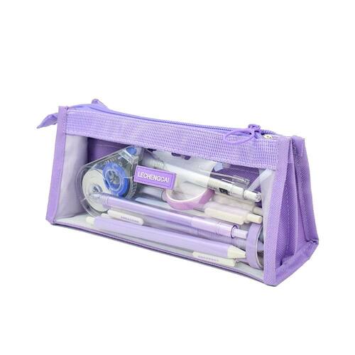 Material: tecido Oxford + PVC Peso: 110 g Tamanho: 210 mm* 70 mm* 100 mm Design transparente elegante — Com uma frente de PVC transparente com detalhes em roxo lavanda, este estojo de lápis oferece uma aparência elegante e moderna, mantendo o conteúdo visível para facilitar o acesso. Armazenamento espaçoso em seis camadas — Com seis compartimentos, este estojo de lápis de grande capacidade permite que você organize canetas, marcadores, lápis, borrachas e muito mais de maneira eficiente e sem bagunça. Tecido Oxford durável — Feita de tecido Oxford de alta qualidade e PVC, esta bolsa para canetas é resistente à sujeira, ao desgaste e ao desgaste, garantindo o uso duradouro para estudantes e profissionais. Versátil para vários usos — Ideal para material escolar, ferramentas de escritório ou itens de maquiagem, esta bolsa de lápis estética é perfeita para crianças, adolescentes e adultos. Compacto e portátil — Medindo 21 × 7 × 10 cm, este estojo de lápis é leve e fácil de transportar em uma mochila, bolsa ou bolsa, tornando-o perfeito para escola, faculdade ou viagens.
