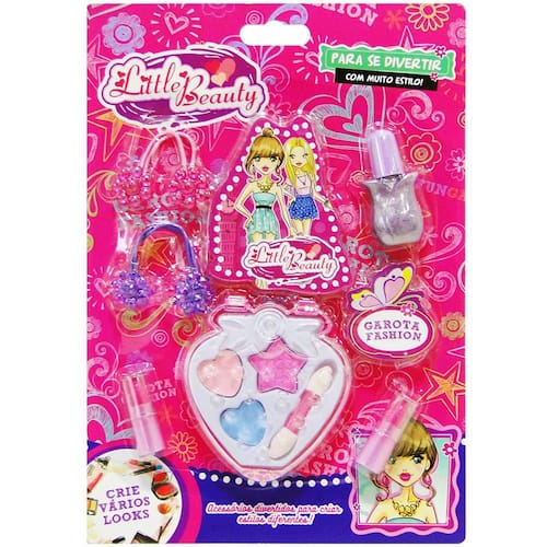Tipo de produto: estojo de maquiagem com sombra + batom e acessorios para boneca little beauty 7 pecas