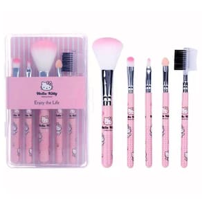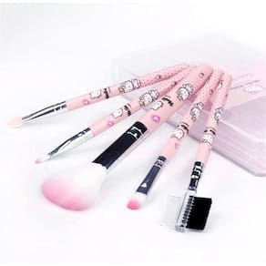 Conjunto contendo 5 pincéis com acabamento na cor rosa e rosa temático Hello Kitty Hoje em dia as crianças são cada vez mais apaixonadas por maquiagem, passam grande parte do dia vendo influencers e celebridades falando do tema e passando diversos tutoriais. Sendo assim, porque não juntamos a parte da criança mesmo, a fase da brincadeira e dos desenhos animados com a fase da criança querer imitar a mamãe e passar um tempo com ela brincando e aprendendo.