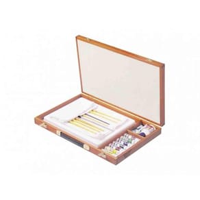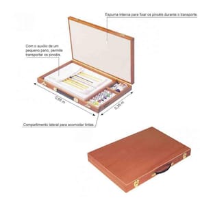 Estojo para Pintura Trident Profissional é fabricado em madeira de fino acabamento, possui espumas para fixar os pincéis durante o transporte e um compartimento interno para acomodar as bisnagas de tintas. Acompanha 01 godê com tampa ideal para aquarelistas profissionais. O estojo possui as seguintes medidas: 35x55cm Não acompanha itens complementares. Parte superior do formulário
