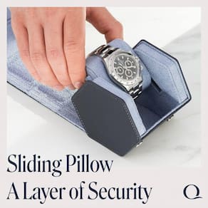 O design hexadecimal mantém os relógios seguros — os porta-relógios individuais da Hexagon oferecem estabilidade superior, mantendo seus relógios no lugar certo. A tampa desdobrável fica plana para que você possa trocar os relógios com segurança sem danos