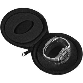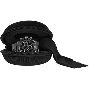 WATCHPOD Caixa de relógio de viagem | Caixa de relógio única com zíper para armazenamento | Capa de relógio portátil redonda acolchoada para viagens | Serve para todos os relógios de pulso e relógios - Proteção máxima: capa rígida para relógio de viagem à prova de esmagamento com exterior de nylon denier balístico 1680 resistente, projetada para ser portátil e manter seu relógio de pulso/relógio inteligente protegido enquanto viaja ou armazena - Interior acolchoado; material interior macio protege seu relógio de arranhões e batidas, tornando esta única capa segura para armazenar relógios de luxo, pano de polimento de microfibra incluído dentro - Centro côncavo profundo; recuo extra profundo, combinado com sua forma ergonômica, trava seu relógio no lugar e evita que a parte traseira do relógio toque na pulseira, o zíper mantém a capa fechada com segurança - Serve em qualquer estilo; esta caixa de relógio com 1 compartimento serve para qualquer relógio masculino ou feminino, relógio inteligente, monitor de fitness ou relógio de luxo com uma face inferior a 50 mm, serve para todas as marcas e estilos - Garantia de um ano; satisfação garantida, reembolsaremos ou trocaremos produtos sem perguntas