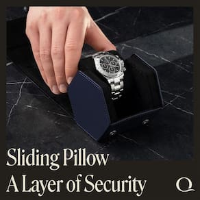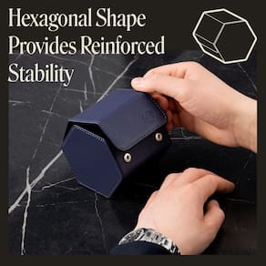 O design hexadecimal mantém os relógios seguros — os porta-relógios individuais da Hexagon oferecem estabilidade superior, mantendo seus relógios no lugar certo. A tampa desdobrável fica plana para que você possa trocar os relógios com segurança sem danos