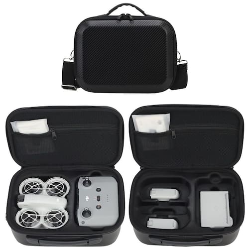 Este é um design especial para o mais novo DJI Neo. Ele protegerá seu drone e acessórios bem e conveniente para o seu armazenamento e viagem. Capa portátil com material de nylon EVA leve e impermeável de alta qualidade protege seu drone de arranhões e choques. Tem espaço de armazenamento suficiente para seus acessórios e espaço de moldagem preciso para seu drone DJI Neo, controle remoto e acessórios. É durável e agradável para você. Tamanho: 28,5 x 20,5 x 11,5 cm. Peso: 380 g - 👉?Forte e estável?Estojo de transporte para DJI Neo, a bolsa de armazenamento rígida não apenas usa material de poliuretano de couro de alta qualidade, mas também equipada com um zíper YKK para evitar efetivamente a infiltração de água, à prova de arranhões, corrente antiqueda, mantém uma aparência refinada. - Design razoável: bandeja interna de moldagem de peça única, à prova de choque e ajuste preciso. Pode acomodar drone dji neo (com protetor de gimbal), bateria de voo inteligente, hub de carregamento, controle remoto DJI RC-N3/N2 voar mais. - Fácil de transportar: design portátil, pequeno e leve para viagens, com alça antiderrapante e alça de ombro ajustável, pode liberar suas mãos. Fácil de guardar em mochilas ou bagagem de mão. - Grande capacidade: o bolso de malha com zíper aumenta o espaço de armazenamento para cabos ou outros acessórios, como cabos tipo C para tipo C, chave de fenda, parafuso de hélice sobressalente, cabo RC, hélices sobressalentes etc., mantendo-os em boas condições. - 👉?Atendimento ao cliente amigável?Embalagem: 1 x estojo de transporte dji neo; Tamanho: 28,5 x 20,5 x 11,5 cm; Peso: 380 g; Flyekist adere aos produtos e serviços de alta qualidade para o propósito. Qualquer insatisfação no momento da compra, , faremos o nosso melhor para resolvê-lo para você!