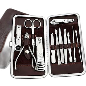 Com esse kit de unha, você terá todas as ferramentas necessárias para cuidar das suas unhas de forma completa. São 12 peças que incluem: 1 cortador de unha grande, 1 cortador de unha médio, 1 cortador de unha pequeno, 1 alicate, 1 lixa, 1 pinça, 1 palito, 2 utensílios de desencravar unha e 1 tesourinha. Todas as peças são organizadas em um lindo estojo.